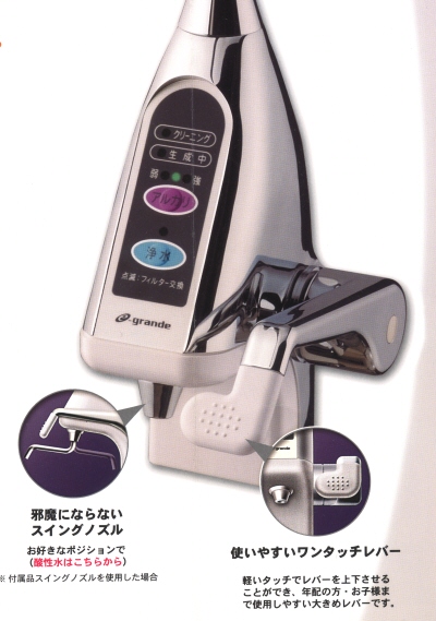 e−グランデの優れた電解性能により、最大−700mV前後の酸化還元電位を持つアルカリイオン水を生成します。 |