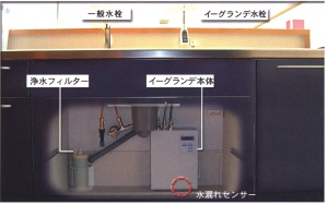| 電極板に付着するカルシウムやスケールを自動的に洗浄します。止水時に洗浄するので手間いらずで従来品のように捨て水のムダがありません。 | |