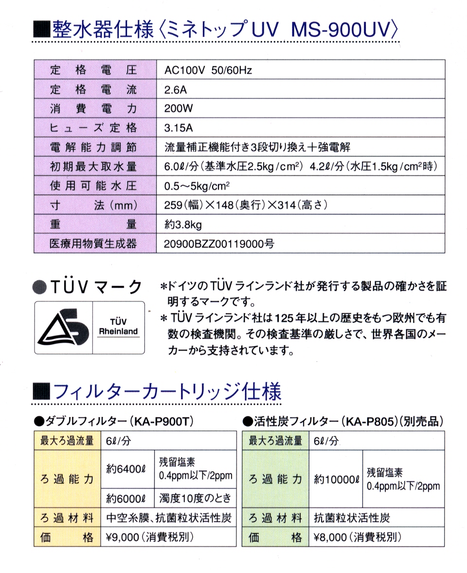 UV照射により水質が変化するということもなく、イオン水の質向上を実現しました。 |