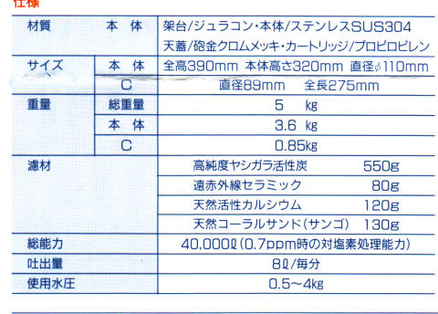 カートリッジの有効期間:3年半(4人家族・1日25g使用が目安)