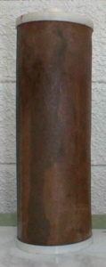 元栓直結浄水器「ソリューヴ」のフィルター。1年間使用。 場所は東京都日野市東京近郊の人には多摩地区なので割と水が良い地域と思われている。 |