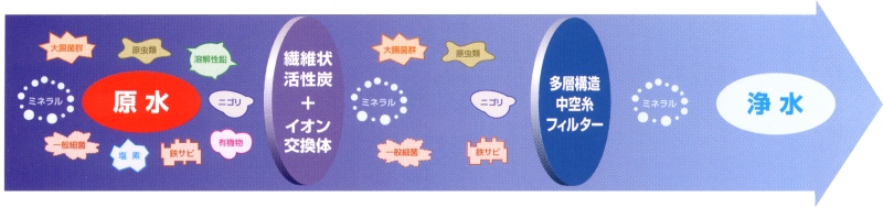 「ろ材の種類」活性炭、中空糸膜(ポリスルホン)、イオン交換体