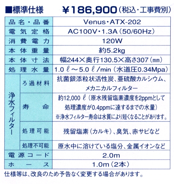 ビーナス(ATX-202)のお見積り及び購入予定のお客様