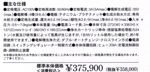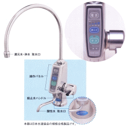 電解還元水と酸性水の水取バランスの調整ができます。酸性水量調整によって電解還元水の濃度調節もできます。